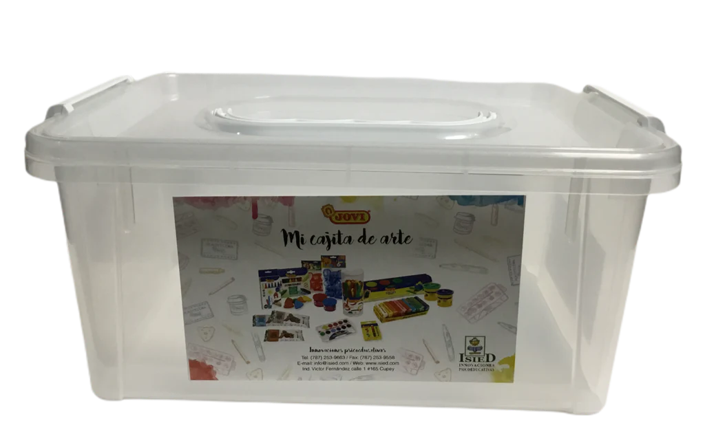 - Baúl transparente perfecto para guardar y organizar material escolar o juguetes.